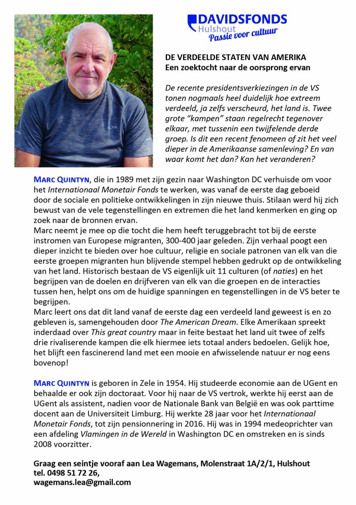 27 nov Hulshout - Bibliotheek # 12375 De verdeelde staten van Amerika Een zoektocht naar de oorsprong ervan donderdag 27 november 2025 om 19:30 uur Over Locatie Labels: Geschiedenis & ErfgoedMens & MaatschappijLezingActiviteitNachten van de GeschiedenisCultuurregio KempenCultuurregio RivierenlandBegeesterend